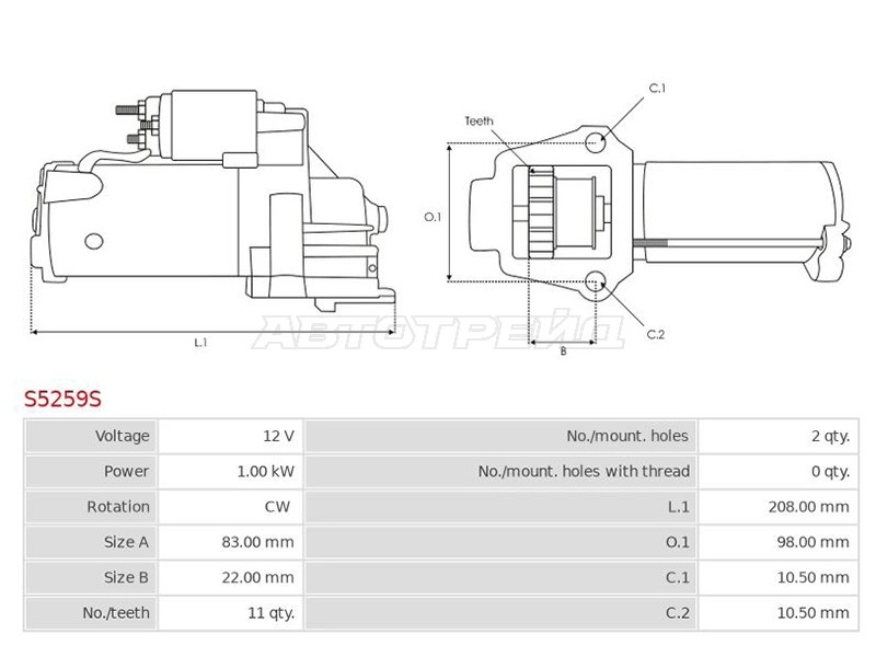 Стартер Mazda 3 03-09 / 6 02-12 / 5 04-11 / Atenza 02-07 (1 kW / Z=11 / (L=209mm))